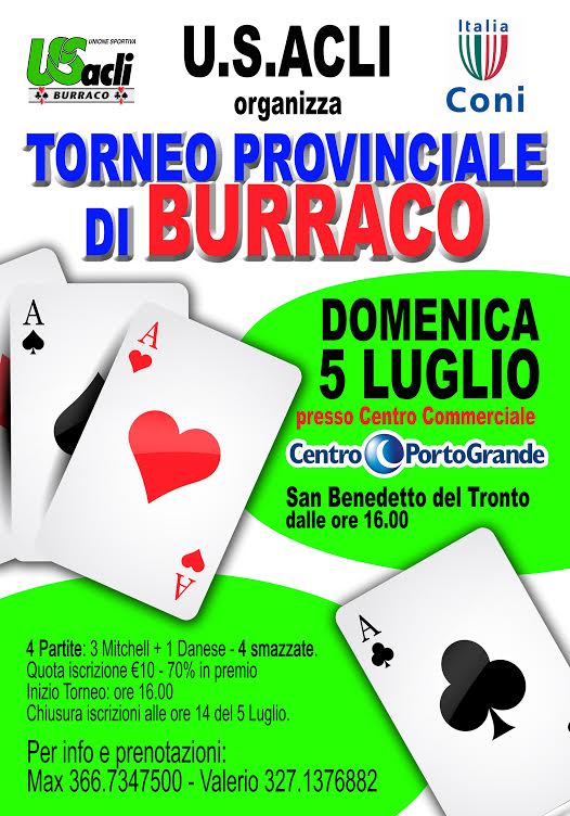 assegnerà il titolo di campione provinciale U.S. Acli di burraco.