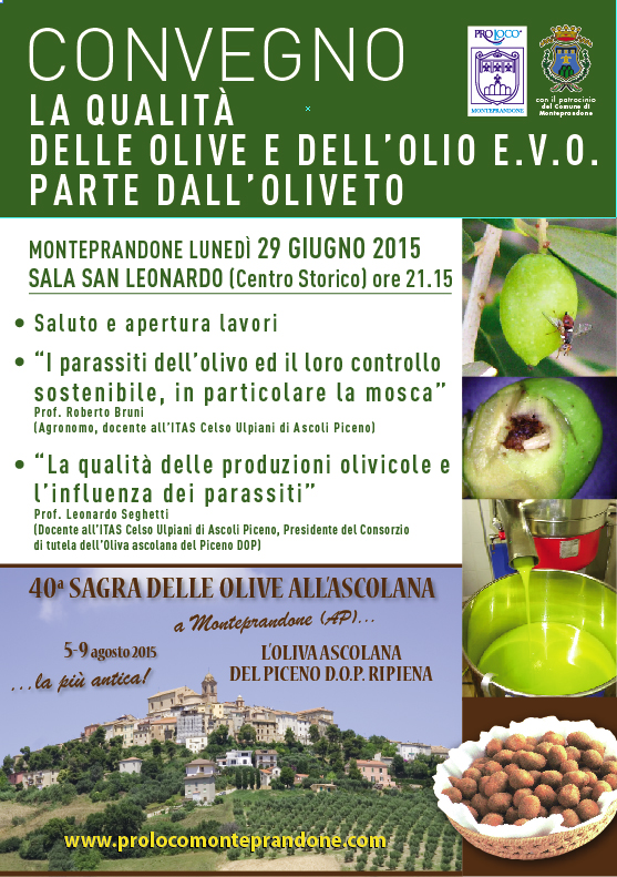 MONTEPRANDONE – Lunedi 29 giugno alel ore 21.15 presso la sala San Leonardo (Centro Storico di Monteprandone) si svolgerà il Convegno “La qualità delle olive e dell’olio E.V.O. parte dall’Oliveto”.
