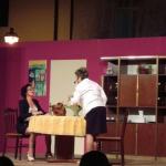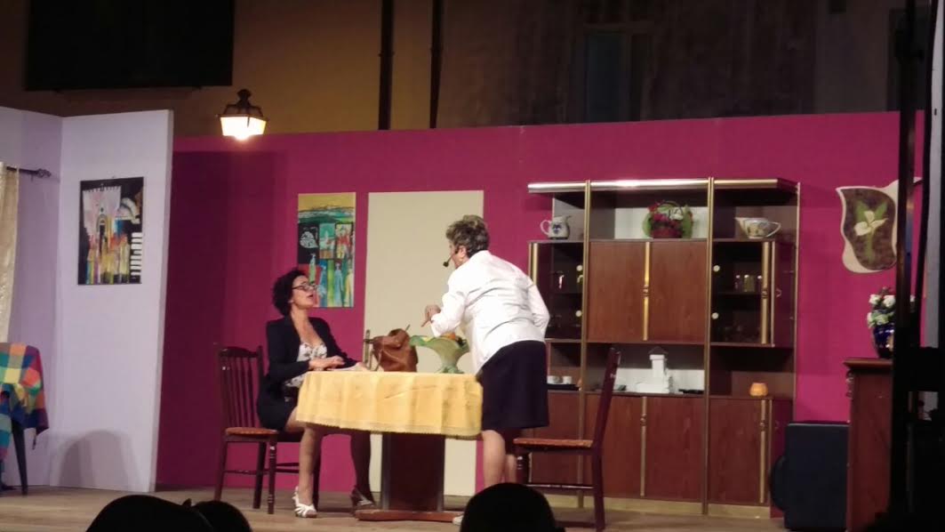 Su una scenografia raffigurante un tipico salotto italiano addobbato con le colorate opere di due pittori locali, Lucio Monaco e Giuseppina Di Saverio, tutti gli attori, bravi e particolarmente attenti alla resa linguistica dei vari dialetti, hanno interpretato egregiamente i vari personaggi, riconducibili a tipologie ben definite e riconoscibili: Gaetano, l’anziano ripetitivo ma simpatico, interpretato da Sandro Di Egidio; Iolanda, la figlia zitella un po’ avanti con l’età ma in attesa ancora di marito interpretata da Maria Assunta D’Elpidio; Doretta, l’amica marchigiana un po’ esuberante e appariscente interpretata da Tiziana Fioravanti, Stanislao Mirabilii nelle vesti dello strano tecnico dell’udito Piero, la dottoressa Frattacchia e la dottoressa Mariucci interpretate da Giuseppina Di Saverio; e infine la fisioterapista Ornella interpretata da Patrizia Paterna.