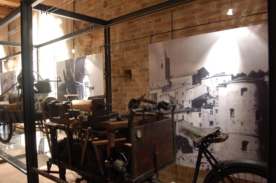 MONTELPARO – Tra le molte attrattive di cui Montelparo si può far vanto ed è custode (molte delle quali abbiamo presentato ultimamente) vogliamo parlare, questa volta, di una cosa davvero straordinaria, rarissima se non unica in Italia. Ci riferiamo al “Museo degli Antichi mestieri ambulanti su bicicletta”. Si tratta di una stranissima collezione di oltre 50 antiche biciclette che furono costruite per svolgere le più disparate attività lavorative, dal medico all’arrotino al calzolaio. È la particolare descrizione di un modo di vivere degli anni ‘20 –’60, quando possedere un’automobile era un lusso e gli artigiani salivano su una bicicletta ingegnosamente modificata e attrezzata con gli strumenti del mestiere, con tutto il necessario per svolgere, nel domicilio dei loro clienti, il loro mestiere e trascorrere mesi interi lontani da casa.