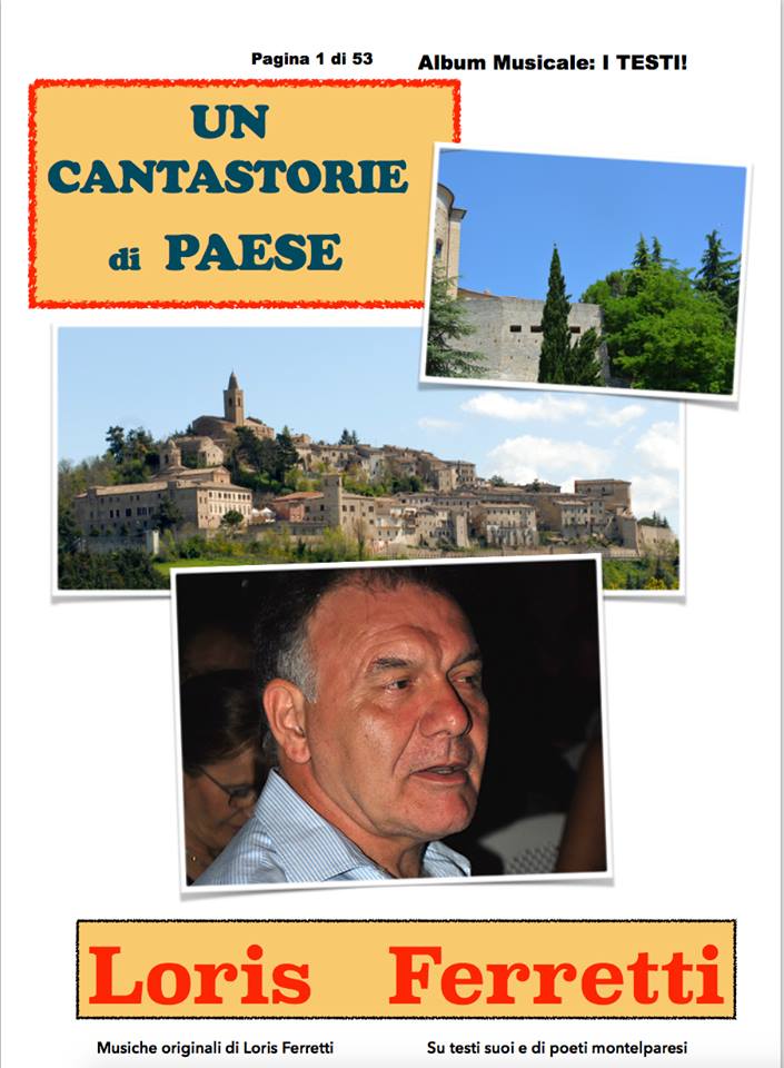 Quella sopra riportata è una delle presentazioni (di Giuseppe Mariucci) che fanno parte della RACCOLTA/ALBUM che, con la collaborazione dello stesso Mariucci e della nostra Associazione IL MURELLO, LORIS FERRETTI ha messo insieme musicando tantissime composizioni in dialetto di poeti montelparesi (Le vrocche, So’ ‘nnocende, A pulendata, E case mie, Stornellata montelparese, Lu paese miu, Montelparo è un sogno, Sand’Andonio Abbate, La Festa di Santa Maria, L’ora de Notte, Filumena, Via Trivio, Monderbere se sveja, A valiscia de carto’, Lo vi’ de nonnu! Questi i titoli )