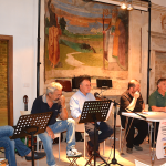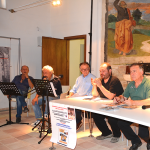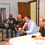 A questo punto, con una “BAND” messa su per l’occasione (Loris e Angelo alla chitarra, Gianni Antodicola alla Fisarmonica e Cristian Mostardi alle percussioni) si è potuto assistere ad un concerto (magari di pochi pezzi) di altissimo livello! Questa formazione ha eseguito “A valiscia de carto’ ” , con parole di Maurilio Beato, e “O vi’ de nonnu”, con parole di Innocenzo Ascenzi. E’ andata quindi la registrazione del pezzo “Sand’Andonio” con parole di Paolo Mariucci. Tutti i pezzi sono stati preceduti dalla lettura interpretativa di Giuseppe Mariucci (i primi due) e di Paolo Mariucci (l’ultimo).