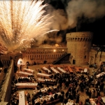 Corteggio Storico, Matrimonio e Palio tra i rioni Aquila e Civetta con i giochi storici della corsa dei sacchi, corsa con le pajarole, taglio del tronco con il segone e tiro alla fune con la Ruota del Duca, piazza del Forte ingresso euro 5,00.