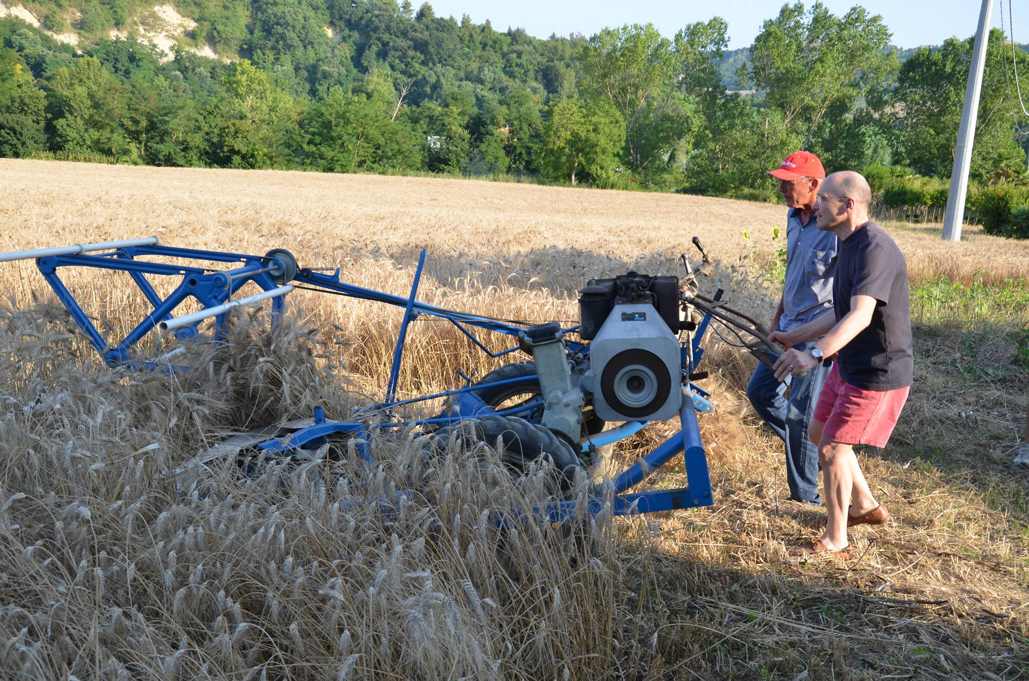 Con la presenza di tantissima gente, il pomeriggio è iniziato con la mietitura eseguita con una storica “Mieti e lega” sapientemente restaurata e manovrata dai soci Bernardo D’Angelo e Pietro Pasquali e, poi, tantissimi intervenuti si sono alternati alla guida di questo macchinario che negli anni ’50 / ’60 del secolo scorso rivoluzionò e rese meno faticoso, il duro lavoro della mietitura, svolto fino a quel periodo soltanto con la falce e la forza dell’uomo.