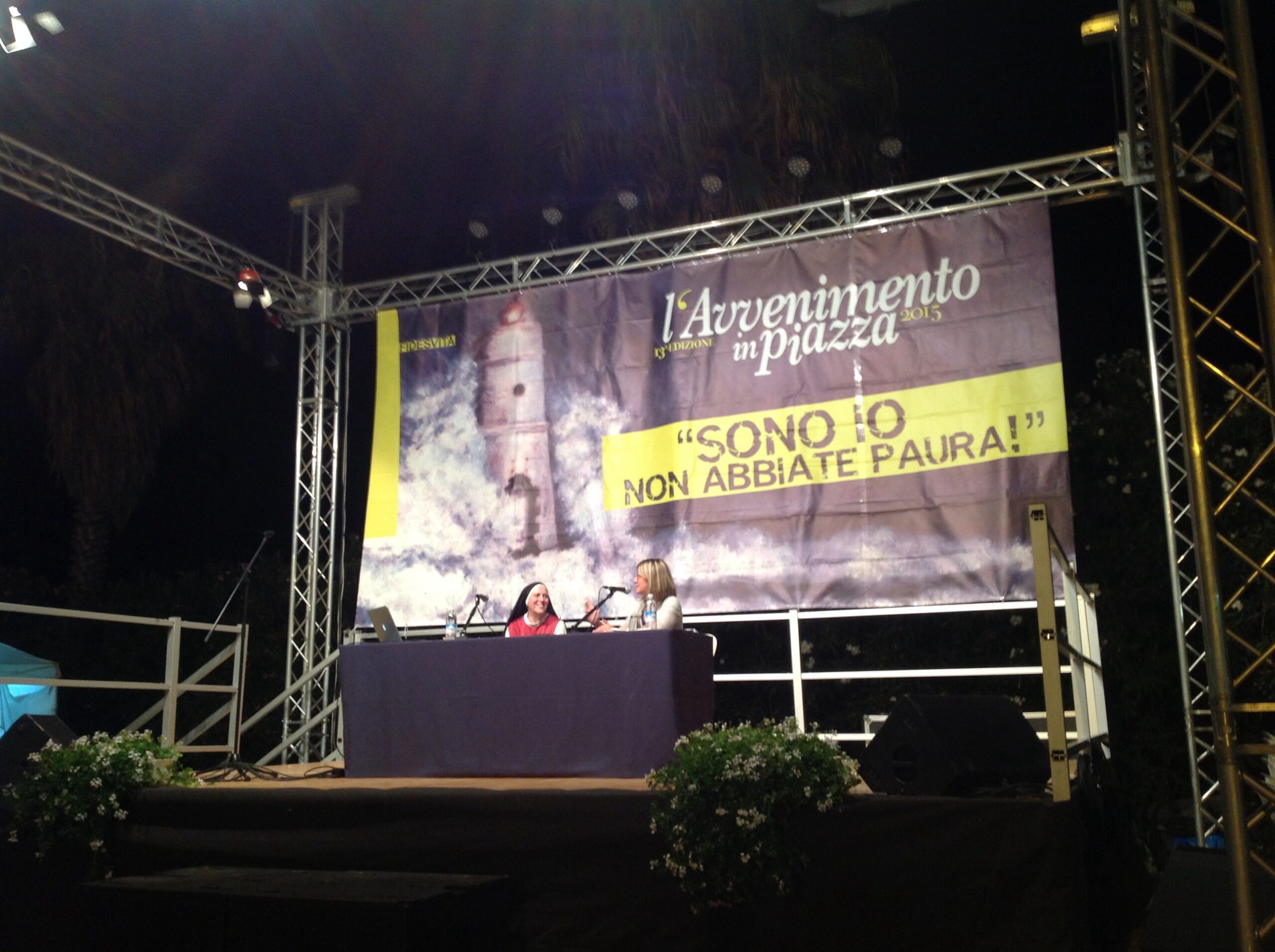 Suor Maria Gloria ha poi concluso la sua meditazione mostrando al pubblico il Cristo alla porta di Antonio Martinotti, nel quale il figlio di Dio viene rappresentato come colui che con discrezione chiede di entrare nella nostra vita per poterle dare compimento e significato. Davanti ad un Dio così rispettoso, non si può avere paura, ma si deve accoglierlo per farsi abbracciare dal suo amore.