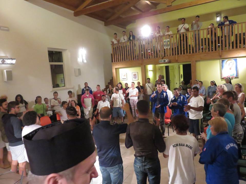 SAN BENEDETTO DEL TRONTO – Un clima di festa e voglia di stare insieme ha caratterizzato la giornata di mercoledì 19 agosto. La festa si riferisce all’arrivo degli amici di Prislop (villaggio nella regione dei Maramures, immersa nei boschi transilvani), ancora una volta in visita nella nostra diocesi, dopo il soggiorno alla parrocchia dell’Annunziata (Porto d’Ascoli) nel 2009. Ad accompagnare i ragazzi c’era come sempre padre Ireneo, monaco greco-cattolico, fondatore insieme alla sua famiglia del Monastero di Prislop, dal quale è nata la Fondazione IHTIS – Manastirea Prislop. I ragazzi sono arrivati nel tardo pomeriggio spalancando il loro sorriso ai presenti e al vescovo Bresciani, e riempiendo la sala polivalente della Caritas della loro gioia. Tutti insieme poi, italiani e rumeni, hanno ascoltato il brano tratto dal vangelo di Matteo (Mt 25, 31-46) e il commento del vescovo Carlo, tradotto simultaneamente in rumeno da padre Ireneo: «I discepoli erano persone pronte a darsi per Gesù, ma non hanno capito perché fare le stesse cose per le persone che incontravano. Gesù dice “Io ero quella persona che avete incontrato che aveva fame, Io ero quella persona che aveva sete”. Egli afferma che le persone che noi incontriamo sono qualcosa di più di semplici bisognosi, perché Lui abita in loro. Quando faccio qualcosa di bene a una persona, la faccio a Gesù. Gesù ci vuole insegnare che in ogni persona che incontriamo Lui è presente: è presente nel nostro amico e nel nostro nemico, nel nostro compagno, è presente nel Padre; è Gesù stesso che dice “Io sono lì”. Tutti noi possiamo fare qualcosa di importante: servire e aiutare Gesù nelle persone che incontriamo, tutti i giorni, per essere con “il Figlio dell’uomo che verrà nella sua gloria con tutti i suoi angeli”.»