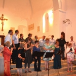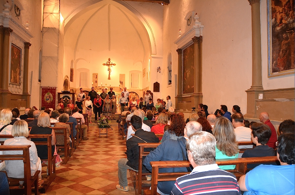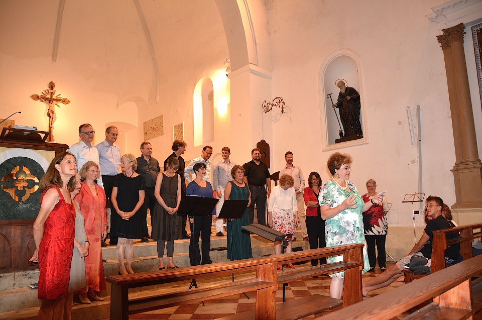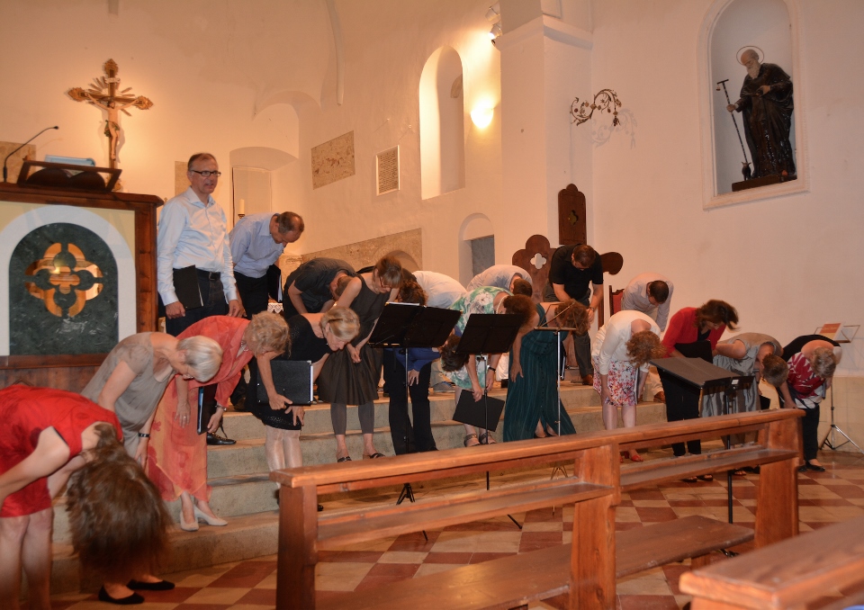 Il concerto di questa sera (con un vastissimo repertorio che comprendeva Bach, Monteverdi e molti autori contemporanei soprattutto tedeschi e inglesi) è voluto essere una sorta di omaggio a questa terra che così discretamente li ha ospitati e con simpatia ha seguito l’evolversi del loro soggiorno. Curioso particolare è quello che alla direzione si sono alternati, volta per volta, quasi tutti gli elementi della corale! Il Sindaco di Montelparo, al termine del concerto, ha consegnato loro un ricordo di questo soggiorno nel nostro paese.