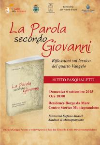 MONTEPRANDONE – Domenica 6 settembre, ore 18:00, presso il Residence borgo da Mare nel centro storico di Monteprandone sarà presentato il libro di Tito Pasqualetti dal titolo “La parola secondo Giovanni – riflessioni sul lessico del quarto Vangelo” a cura de “I luoghi della scrittura”.