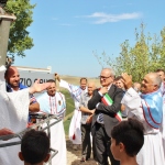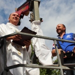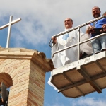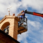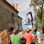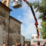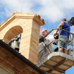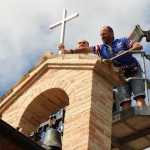Al termine della celebrazione Eucaristica, Don Nicola si è recato con un cestello meccanico sul tetto della chiesa per benedire nuovamente, secondo l’apposito rituale, l’antica campana del 1908, ed issare una piccola croce sulla sommità della struttura.