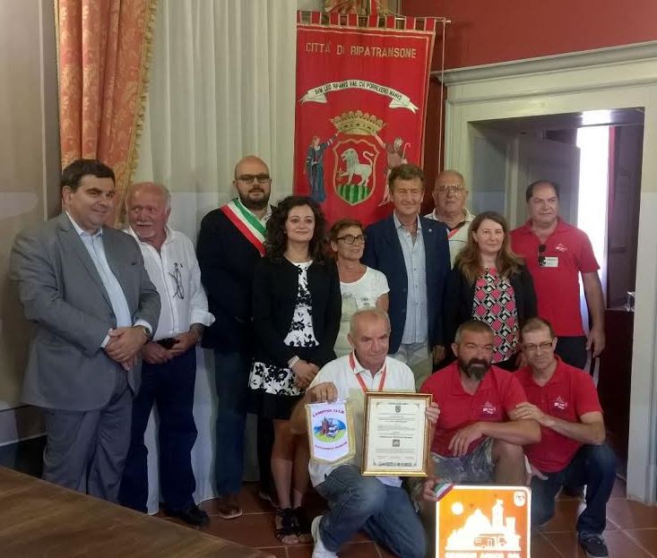 Sempre in mattinata, quale chiosa di questa bella esperienza e ringraziamento per la buona accoglienza ricevuta, è stata consegnata simbolicamente al Vice Sindaco in Sala Rossa una targa che permette alla città di Ripatransone di potersi da ora fregiare anche del titolo di “Città del turismo itinerante”.