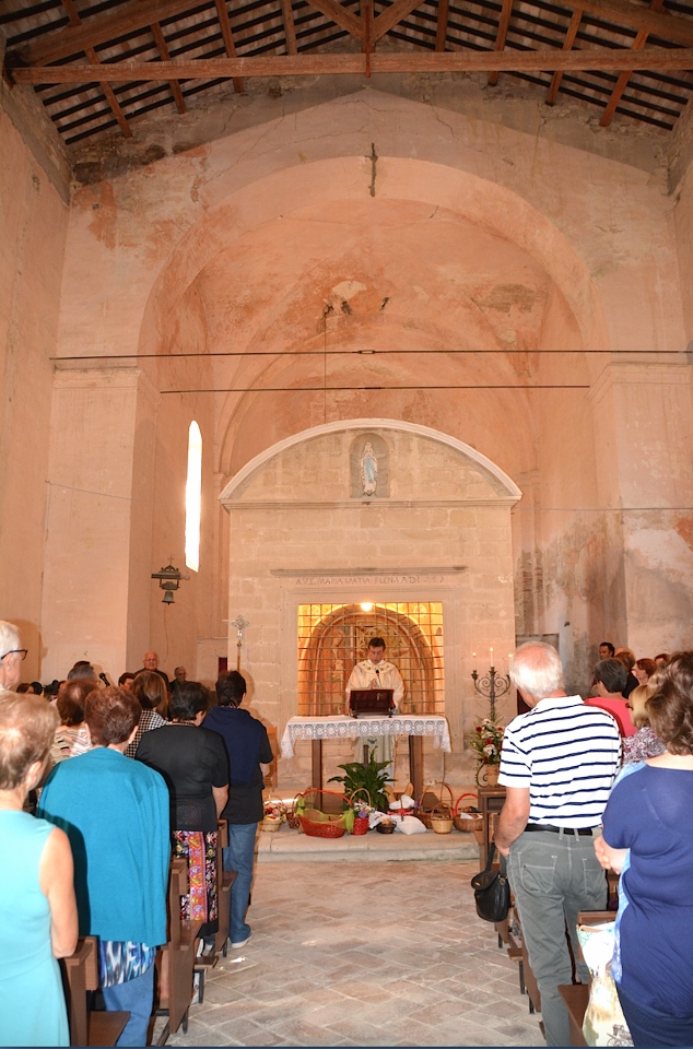 Al centro dei festeggiamenti era la bella e particolare Chiesa Agreste di Santa Maria in Camurano sita in aperta campagna a circa due chilometri dal paese. Sulla sua importanza storica e circa i suoi contenuti artistici abbiamo ampiamente trattato in vari articoli precedenti. Oggi vogliamo riferire su quanto hanno organizzato, per perpetrare un’usanza centenaria, i “contradaioli” di questa bella parte di Montelparo!