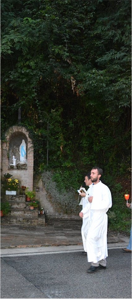 In un clima mistico e surreale (considerata l’ora che andava verso l’imbrunire) creato dalle preghiere, dai canti e dalla decine e decine di candele che rischiaravano il cammino, i due chilometri che separavano il centro abitato di Montelparo e il Santuario di Santa Maria in Camurano sono stati percorsi quasi senza accorgersene!