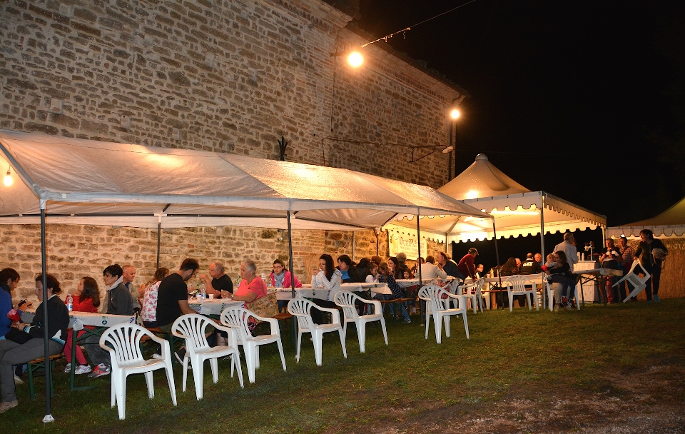 Fuori dalla Chiesa poi, e fino a notte inoltrata, i bravissimi “festaroli” e “contradaioli”, guidati dal capo-contrada Pierino Tempestilli, davano inizio, non senza la sottolineatura musicale di Loris e i suoi amici di una volta, alla cena conviviale con eccezionali e stuzzicanti piatti di carne alla brace.