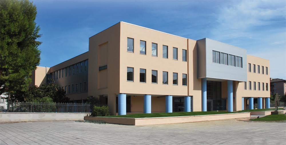 Una parte del piano terra è stata ampliata inglobando parte del porticato esterno per la realizzazione di uno spazioso atrio di ingresso. Il piano terra di circa 1200 mq ospita, oltre all’atrio, la sala professori, tre uffici amministrativi, un locale tecnico ed infine uno spazio dedicato alla biblioteca giuridica donata dal Tribunale di Ascoli Piceno alla scuola.
