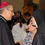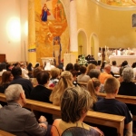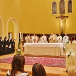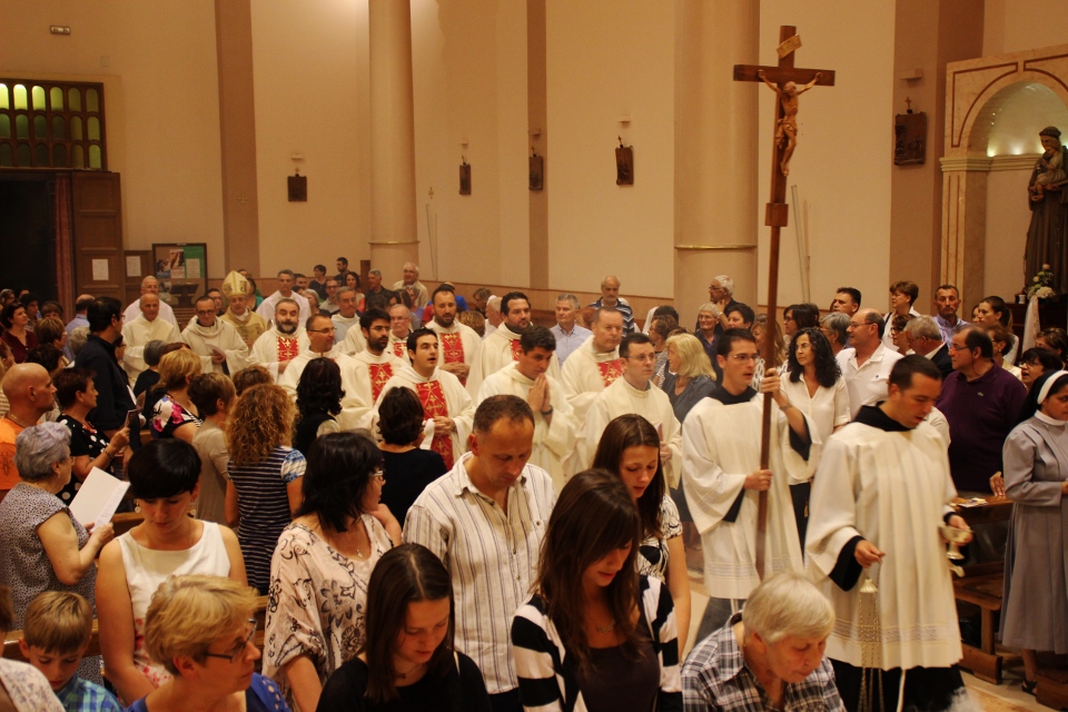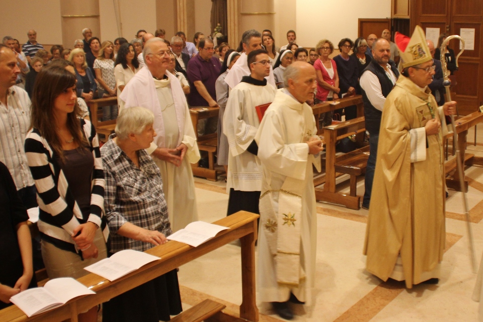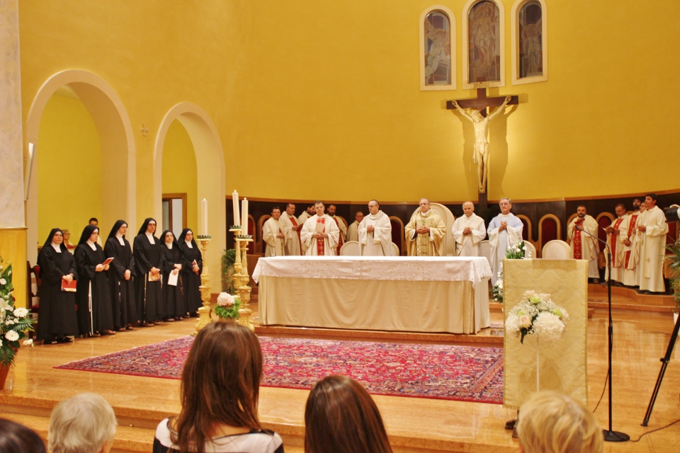 La celebrazione, presieduta dal nostro vescovo, si è tenuta sabato 12 settembre presso la chiesa di Sant’Antonio da Padova; oltre alla comunità e a molti sacerdoti concelebranti, presenti anche il sindaco di San Benedetto del Tronto, Giovanni Gaspari, e il ministro provinciale padre Giancarlo Orsini, il quale ha voluto poi spendere qualche parola di ringraziamento per tutti coloro che hanno contribuito alla realizzazione di questo bel momento di festa. «Ringrazio i fratelli della comunità di sant’Antonio – ha affermato padre Orsini – i quali ci hanno aperto la loro chiesa e la loro casa, in spirito di vera fraternità; ringrazio la corale Domenico Stella, che ha accompagnato con il canto la celebrazione. Grazie di cuore agli amici del monastero, che da tempo stanno organizzando un momento di condivisione e gioia. La nostra gratitudine e la nostra preghiera va infine a ciascuno di voi, perché il Signore accompagni i vostri passi nel cammino della vita».
