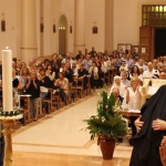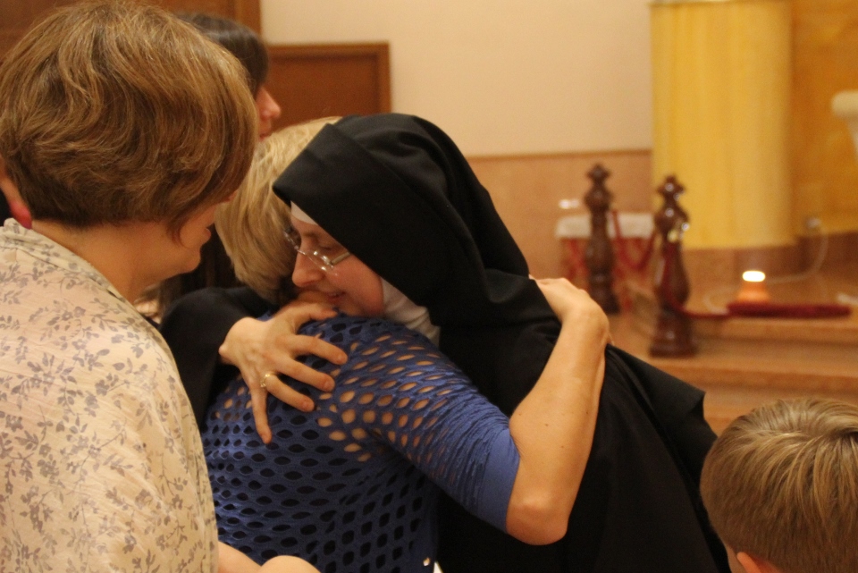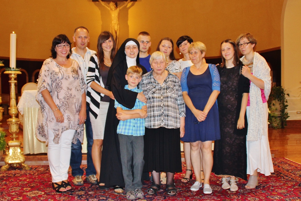 Alla celebrazione erano presenti tutti i membri del monastero Santa Speranza, le sorelle clarisse che da qualche anno ormai condividono la loro vita con quella di suor Massimiliana. Queste sono state accanto alla neoprofessa in ogni momento della celebrazione, come succede in tutte le famiglie con delle vere e proprie sorelle maggiori. Al termine della solenne benedizione e consacrazione della professa, tutta la tensione si è sciolta in un lungo e fragoroso applauso, tra l’emozione dei parenti di suor Massimiliana (arrivati dalla Polonia) e gli abbracci delle sorelle clarisse; chiunque nella grande aula della chiesa poteva percepire l’Amore che sprigionava dai volti radiosi di tutte quelle persone sull’altare.