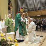 Significativa, perché attraverso il sacramento dell’ordine si realizza un modo particolare della presenza del ministero nella Chiesa. Il ministero ordinato è essenziale e senza di esso non abbiamo la Chiesa. Collocando questa ordinazione all’inizio dell’anno pastorale vogliamo anche richiamare l’indispensabile attenzione alla vocazione di speciale consacrazione che in tutte le sue componenti una Chiesa deve avere. Sabato scorso abbiamo avuto la professione perpetua di Sr. Massimiliana, clarissa del nostro monastero di Santa Speranza. Questa sera abbiamo l’ordinazione diaconale di Luciano: due doni del Signore alla nostra Chiesa diocesana. Lodiamo e ringraziamo il Signore: mi pare un buon segno per l’anno pastorale che andiamo ad iniziare che richiama l’intrinseca dimensione vocazionale della vita cristiana.