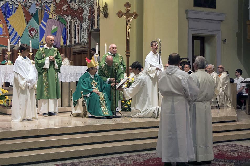 Caro Luciano, quello che il Signore ha detto agli apostoli, lo dice a te questa sera mentre la Chiesa ti accoglie nell’ordine del diaconato. Con esso non sei costituito primo nei confronti di nessuno, ma, in obbedienza al vescovo, servitore di tutti. O, se vuoi, il primo nel servire tutti, ma senza rivendicare mai questa primarietà, bensì esercitandola nell’umiltà. L’onore del cristiano sta nel servire, come Gesù che, da ricco che era, si è fatto servo di tutti, abbassandosi fino a noi.