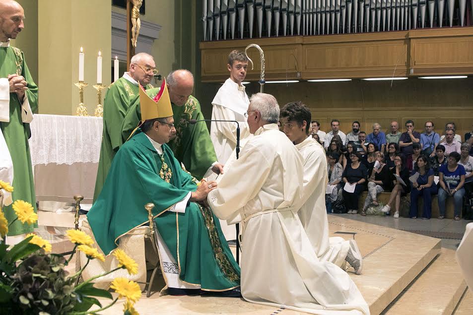 Significativa, perché attraverso il sacramento dell’ordine si realizza un modo particolare della presenza del ministero nella Chiesa. Il ministero ordinato è essenziale e senza di esso non abbiamo la Chiesa. Collocando questa ordinazione all’inizio dell’anno pastorale vogliamo anche richiamare l’indispensabile attenzione alla vocazione di speciale consacrazione che in tutte le sue componenti una Chiesa deve avere. Sabato scorso abbiamo avuto la professione perpetua di Sr. Massimiliana, clarissa del nostro monastero di Santa Speranza. Questa sera abbiamo l’ordinazione diaconale di Luciano: due doni del Signore alla nostra Chiesa diocesana. Lodiamo e ringraziamo il Signore: mi pare un buon segno per l’anno pastorale che andiamo ad iniziare che richiama l’intrinseca dimensione vocazionale della vita cristiana.