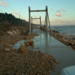 La situazione delle barriere a protezione della pista ciclabile Grottammare-Cupra Marittima è diventata particolarmente critica nel corso dell’ultimo inverno, a causa delle energiche mareggiate del mese di febbraio che hanno ulteriormente danneggiato e disarticolato la scogliera radente. I marosi, infatti, avevano raggiunto con facilità il piede del rilevato ferroviario generando anche fratture alla passerella in cemento della passeggiata. A fronte di ciò, l’amministrazione comunale aveva anche richiamato l’attenzione di RFI sollecitando il sopralluogo da parte dei tecnici per un monitoraggio sulle condizioni di sicurezza del rilevato ferroviario.