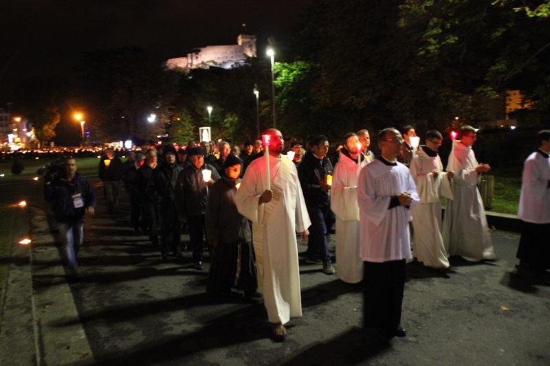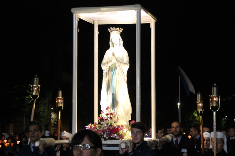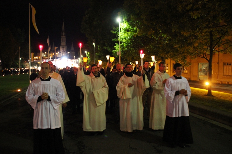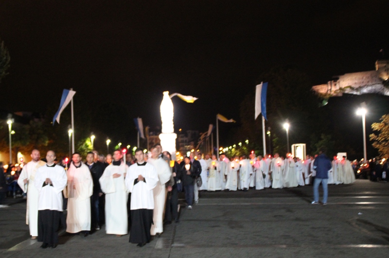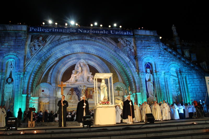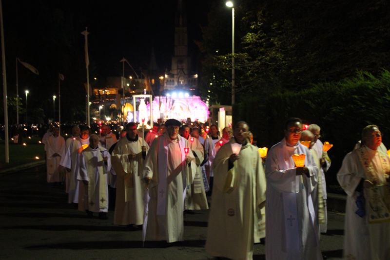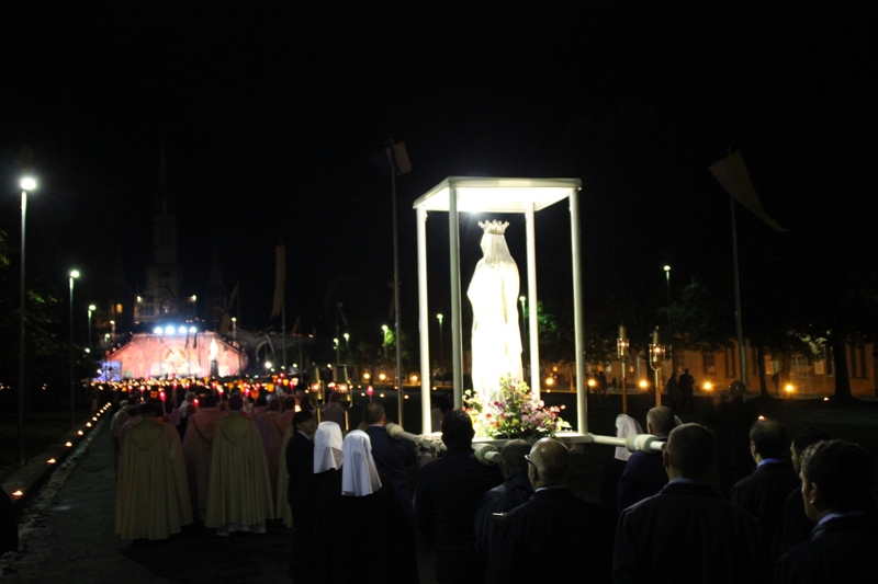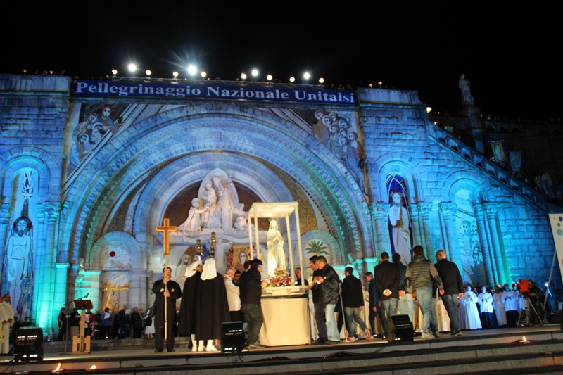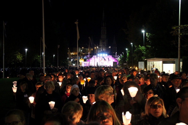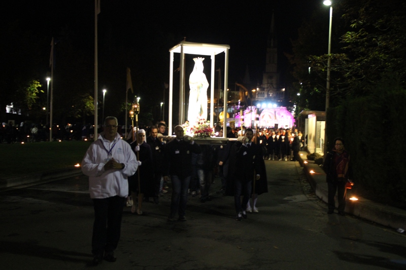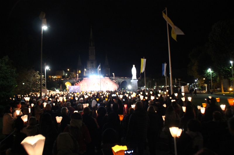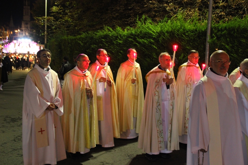 Alle ore 21.00 tutti i fedeli presenti a Lourdes hanno vissuto uno dei momenti più emozionanti del pellegrinaggio: la fiaccolata che dalla Grotta delle apparizione ha condotto la processione di fronte ai gradini della Chiesa, dove si è conclusa con la solenne benedizione.