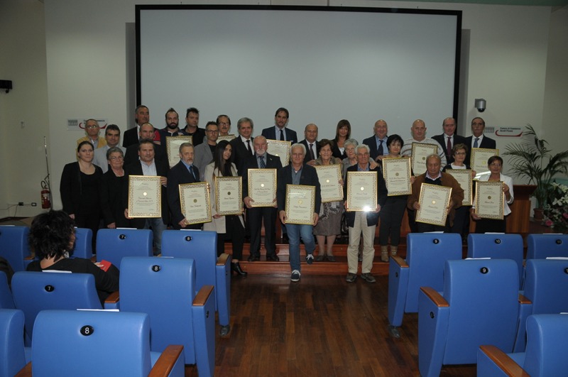 ASCOLI PICENO – “Il lavoro è indispensabile: tramanda nel tempo i nostri valori, mantiene e rinnova le tradizioni, costruisce un futuro per le nuove generazioni. Il lavoro è indispensabile per inserire un individuo nel contesto sociale, per farlo sentire vivo”. Con queste parole, il Presidente della Camera di Commercio di Ascoli Piceno, Gino Sabatini, ha voluto sottolineare l’importanza di premiare la fedeltà al lavoro, in un periodo storico in cui il lavoro a tempo indeterminato sembrerebbe una chimera. Non si è trattato dunque semplicemente di un premio al passato lavorativo di alcuni valenti imprenditori, dipendenti e di alcune aziende picene, ma di una celebrazione del lavoro quale leva per un domani migliore, la cerimonia del “Premio Fedeltà al Lavoro e al Progresso Economico” 2015 che si è svolta, il 30 settembre, nella Sala Scipioni del Centro Congressi della Camera di Commercio di Ascoli Piceno. L’evento ha visto la partecipazione di un pubblico numeroso e la presenza di alte autorità civili, militari e del sistema camerale. Ecco i nomi dei 20 premiati alla manifestazione.