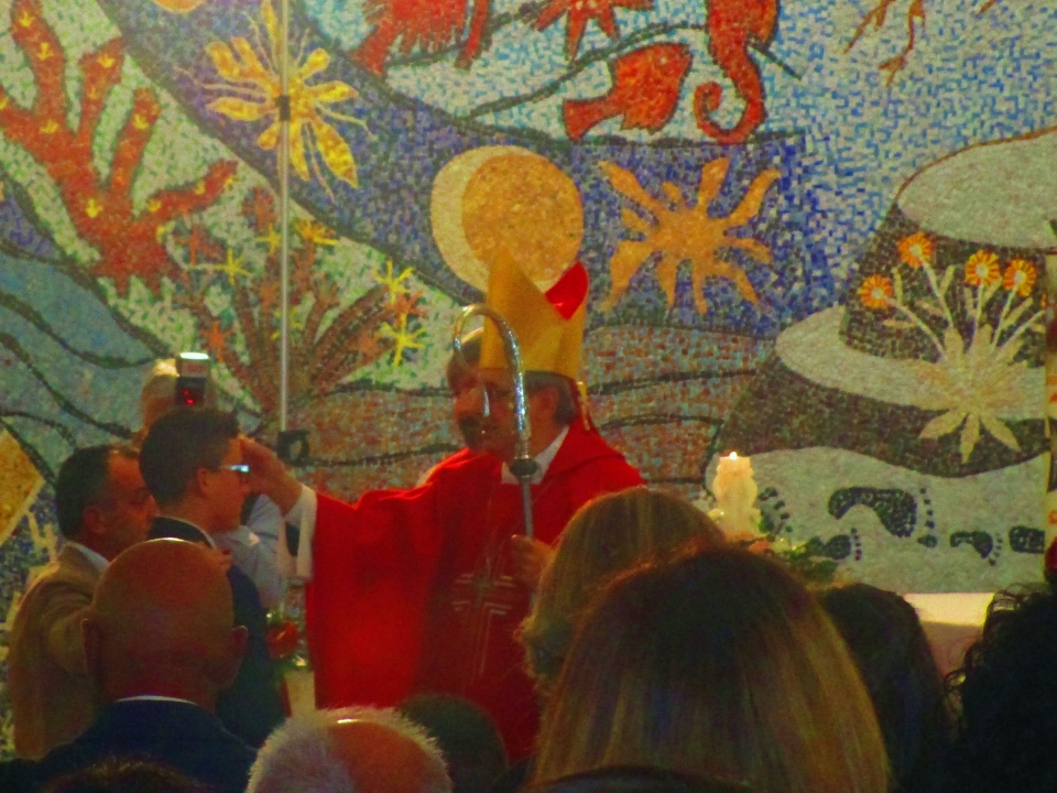 Ad attenderli, oltre al parroco Don Marco e agli educatori, una chiesa gremita di persone e un coro in festa. Momento particolarmente significativo quello del “sigillo”, durante il quale, attraverso l’imposizione delle mani e la crismazione, Dio in persona si è fatto presente in ciascuno di loro con il dono del suo Santo Spirito. Come ha sottolineato il nostro Vescovo nella sua omelia, infatti, “è Dio che opera nei cresimandi senza che loro facciano nulla. Dio oggi vi ha detto <<Io ci sono e vi dono il mio Spirito>>. Ora tocca a voi e a noi tutti decidere cosa fare della nostra vita, se utilizzare cioè gli strumenti che Dio ci ha fornito per essere pienamente felici. Dio, infatti, desidera solo il nostro bene e per questo ci viene in soccorso con i Sacramenti.