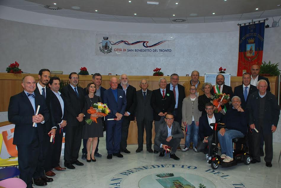 Durante la cerimonia non sono mancati momenti emozionanti, divertenti e attestati d’amore verso la città. Di Salvatore ha letto una poesia in dialetto sul conferimento del premio, Camiscioni ha donato al Sindaco la cravatta ufficiale della nazionale italiana di rugby, Rosa Marisa Borraccini ha ringraziato e ricordato che San Benedetto resta sempre “un porto sicuro per i suoi affetti”.