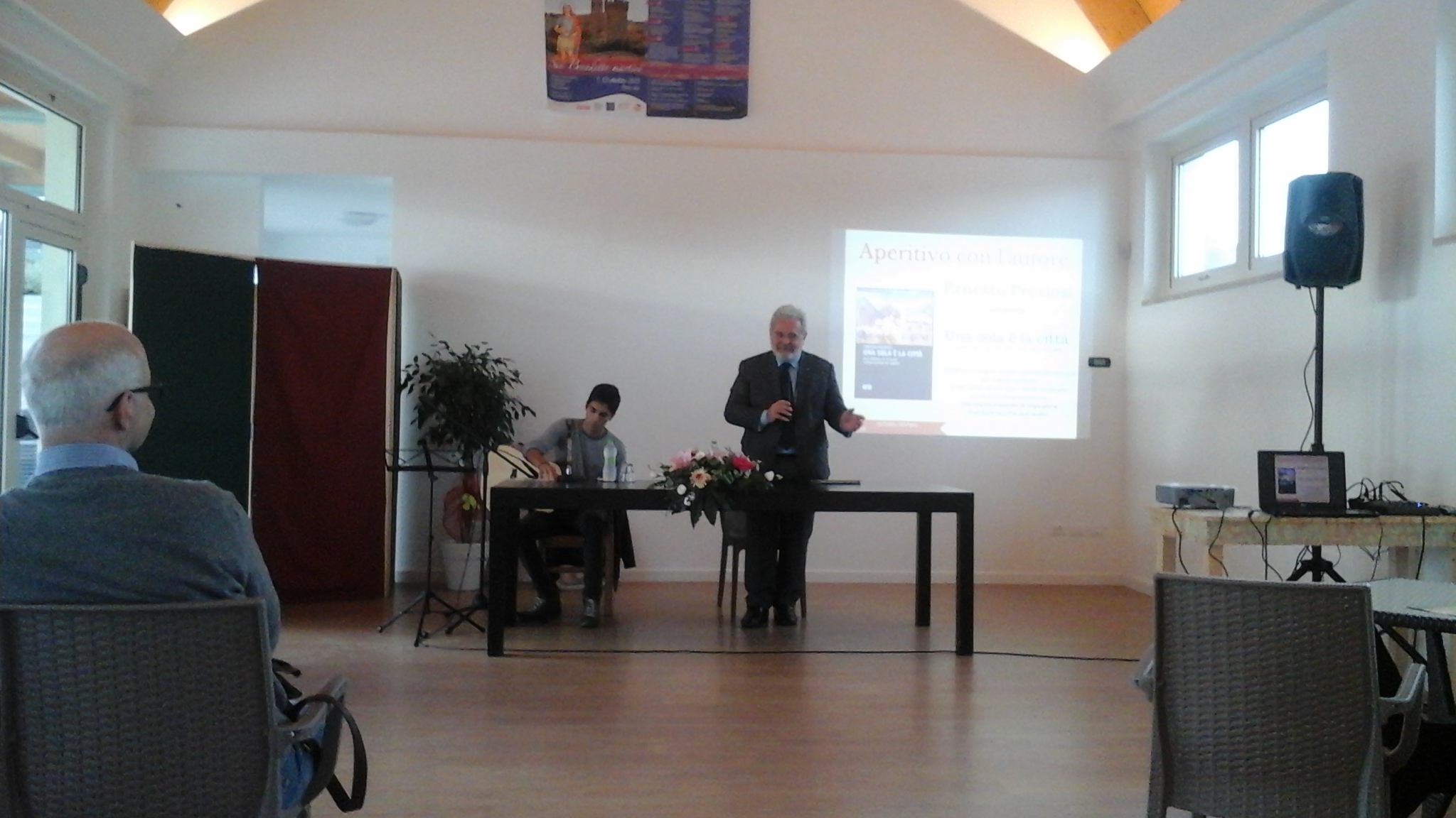 PORTO D’ASCOLI – Un clima disteso e conviviale alla Kabina Welcome per l’ ”Aperitivo con l’autore”, che ha visto ospite Ernesto Preziosi, accompagnato da intermezzi musicali di un giovane talentuoso Daniele di Fabrizio. Preziosi ha presentato il suo ultimo lavoro “Una sola è la città”, edito dall’AVE, un progetto editoriale capace di mantenere bassi i costi del libro grazie all’impegno di diverse associazioni nel garantirne l’acquisto.