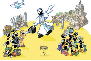 Cinque tratti. Nella presentazione dell’opera, Maria Teresa Pontara Pederiva evidenzia, per accompagnare “le simpaticissime formiche di Fabio Vettori” con una riflessione, i tratti caratteristici di Papa Bergoglio, quelli che l’hanno reso così familiare in tutte le parti del mondo a persone di ogni cultura ed età. Innanzitutto, “la novità”: “Si può dire – osserva – che Francesco è il primo Papa ‘globale’ nel senso che si rivolge a tutto il pianeta: il suo è uno sguardo abituato a vedere con gli occhi del Sud del mondo, quello impoverito, con tutti i suoi drammi indotti dal ricco (sempre più indifferente ed egoista) Nord”. Il secondo tratto è “l’umanità”: “Papa Francesco non ha timore di mostrarsi innanzitutto uomo, e poi uomo di Dio, vescovo di Roma e guida della Chiesa”. Il terzo è “la concretezza”: “È un Papa che non teme di avvicinarsi alle persone, abbracciarle, baciarle, guardarle negli occhi, parlare loro in maniera diretta: una concretezza capace davvero di ‘toccare’ l’uomo di oggi”. Il quarto tratto è “la verità”: “La discrezione, l’avvicinarsi in punta di piedi alle persone rispettandone le scelte non significa per lui rinunciare a proporre la verità dell’annuncio cristiano, così ci ricorda ripetutamente come il mondo di oggi si sia di fatto allontanato, non solo dal Vangelo, ma dalla stessa umanità”. Infine, “la gioia e la speranza”: “Papa Francesco – sostiene Pontara Pederiva – sembra non mostrare fatica, nonostante l’età, forse per quel suo indicare la ‘gioia’ del Vangelo’ sulla quale ha scritto anche la prima esortazione: è la gioia che fa la differenza di un cristiano, ‘non una fuga dalla realtà, ma una forza soprannaturale per affrontare e vivere le difficoltà quotidiane’”.