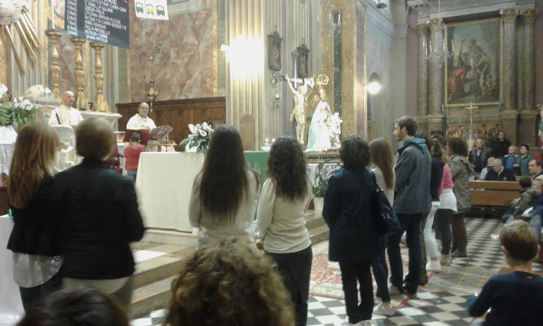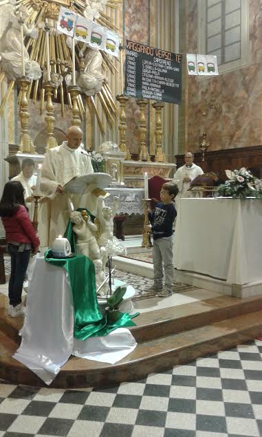 ACQUAVIVA PICENA – Domenica 11 ottobre ad Acquaviva Picena, i bambini, i ragazzi e i giovani accompagnati dalle famiglie, hanno dato inizio all’anno catechistico 2015/2016. Immaginando la Chiesa come una “stazione di partenza” tutta la comunità si è radunata alle 9:30 al portone d’ingresso, dove si è svolta l’introduzione alla Messa, inizio del “viaggio” verso Gesù. Durante la celebrazione, presieduta dal parroco don Alfredo con l’assistenza del diacono Giovanni e animata dal coro dei bambini, è stato presentato lo slogan ACR dell’anno associativo 2015/2016: “Viaggiando verso te”. Ogni educatrice ha impersonato il capotreno del proprio gruppo, mentre Michele, un generoso collaboratore, da buon capostazione ha dato il via a questo viaggio con il suono di un fischietto. A loro volta i gruppi di catechismo sono diventati binari, ognuno riferito all’anno del proprio cammino di fede.