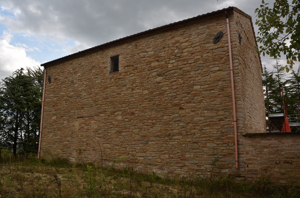 La sua attuale costruzione può essere fatta risalire al Secolo Diciannovesimo. Il complesso fa parte integrante di una fattoria (con stalle, magazzeni, forni ecc.) eretta unitamente alla Chiesa. Questo complesso fu ideato da privati ed è stato sempre nelle proprietà e nelle disponibilità di quei privati. Fino agli inizi degli anni ’60, la fattoria fu abitata dalle Famiglie Baglioni e Cameli che curavano i lavori in quelle terre. Poi fu completamente abbandonata.