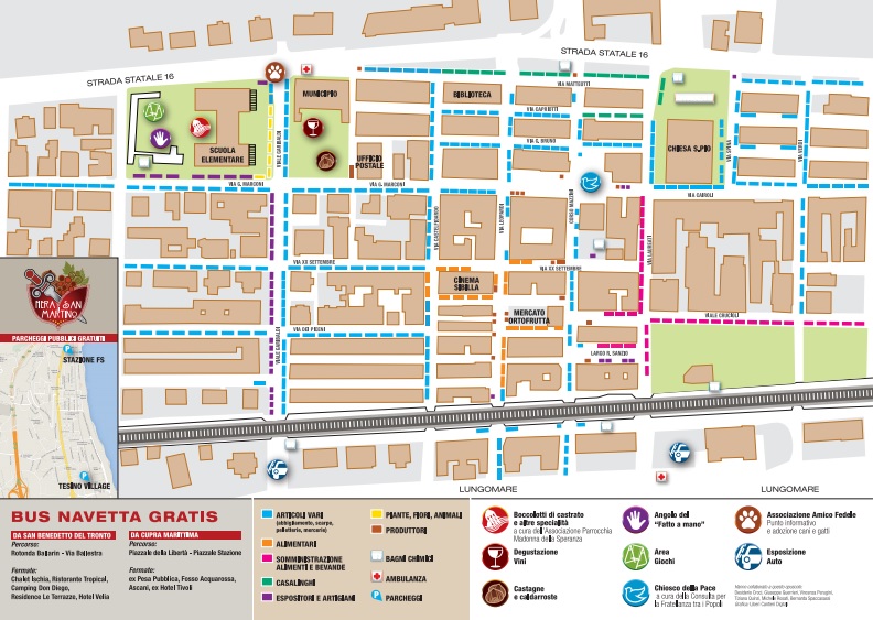 Grande attesa per il preannuncio, ossia l’evento di domenica 8 novembre, quando, a partire dalle ore 16 il Capitano del popolo “annuncerà” l’apertura della fiera. Seguirà il “reclutamento” delle milizie urbane e la simulazione di caccaia al falcone, nonché la realizzazione dell’accampamento, nel parco del comune. Ad organizzare questi eventi collaterali, ma comunque pittoreschi e radicati nella storia della tradizione, l’associazione Presepe Vivente di Grottammare e l’associazione “Orme del tempo”. Il percorso del capitano del popolo partirà da Piazza San PioV, Via Laureati, Piazza Fazzini, Via Marconi e Guardino Comunale. Alcuni numeri: saranno 407 gli spazi concessi, per 249 di merci varie, 28 di prodotti alimentari tipici, 20 di ferramenta, 35 di somministrazione alimenti e bevande, 6 di animali e fiori, 26 di produttori diretti e 43 di promotori. A Piazza san Pio ci saranno ben 20 associazioni no profit con i loro stand, tra cui il “chiosco della Pace” in piazza Fazzini, organizzato da suole ed associazioni. Tra i servizi gratuiti, ricordiamo i bus navetta da San benedetto e da Cupra ( rispettivamente dalla rotonda Ballarin e da piazza della Libertà), parcheggi e soccorsi. Altra novità è il ritorno delle castagne di Acquasanta, il cui prodotto sembra aver superato gli attacchi del parassita che aveva minato interi castagneti. L’associazione troverà posto nel Giardino comunale insieme alle 8 cantine selezionate, questo per tenere la situazione più sotto controllo dopo i problemi della passata edizione. In piazza Fazzini ci sarà il Chiosco della Pace, promosso dalla Consulta per la fratellanza fra i Popoli e l’Isc Leopardi”.