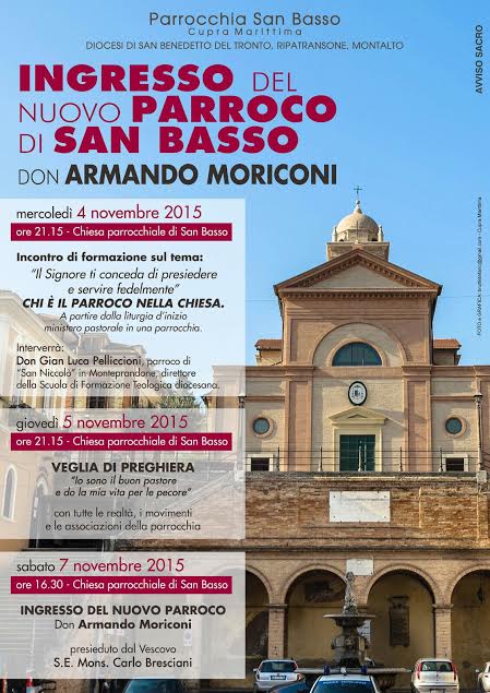 L’ingresso ufficiale avverrà sabato 7 novembre alle ore 16,30 presso la chiesa parrocchiale di San Basso con la cerimonia presieduta dal Vescovo Mons. Carlo Bresciani.