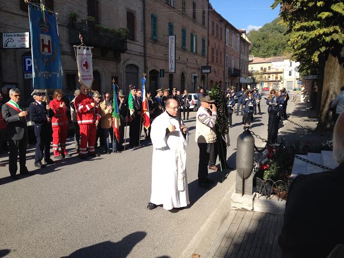 Dopo la Santa Messa, in processione si è raggiunto il monumento ai caduti situato al centro del paese, procedendo alla benedizione della ghirlanda, per poi deporla al fianco del monumento. Tanti i cittadini intervenuti per rendere omaggio, alla presenza di autorità civili e militari e rappresentanti di associazioni, che ogni anno con la loro presenza non fanno mancare la loro vicinanza, per coloro che hanno perso la vita per un epilogo negativo della nostra storia. E allora il messaggio per tutti è di iniziare a costruire mattone dopo mattone un mondo di pace per non ripetere gli enormi errori del passato, mai risanabili. Invitiamo tutto il mondo a gridare all’unisono l’indimenticabile frase di Giovanni Paolo II: “Mai più la guerra, mai più, mai più!
