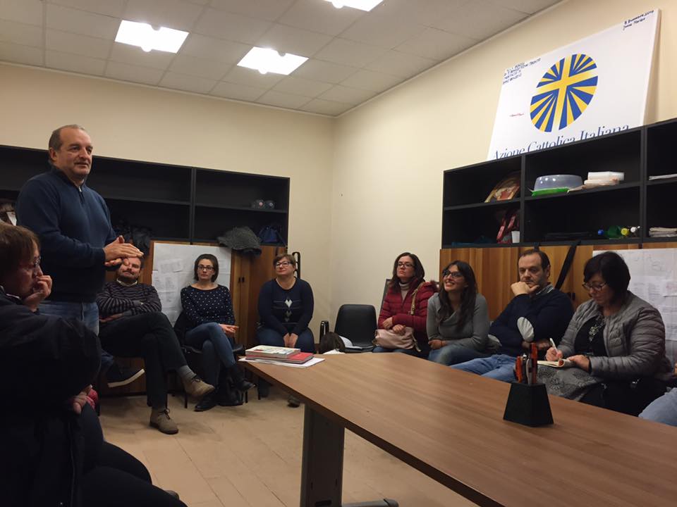 “Ci sta a cuore” è stato il tema dell’incontro, iniziato alle 20:00 con una cena conviviale. Durante la cena, i presidenti sono stati intervistati singolarmente e ripresi con una telecamera amatoriale, i quesiti erano tre, riguardavano la propria associazione parrocchiale. Gli interrogativi posti ad ognuno dei presidenti sono state: I Limiti, il punto di Forza e il Sogno. Dopo la cena le risposte vengono proiettate affiché ognuno possa prenderne visione e così com’è nello stile dell’AC, dopo “l’esperienza” si passa al “confronto” e con l’ausilio della Parola, l’Assistente Unitario Don Luigino Scarponi ha guidato la riflessione. A seguire, divisi in piccoli gruppetti, si apre il confronto con uno dei documenti cardine dell’AC, ossia il progetto formativo. Si da seguito ad un rapido confronto.