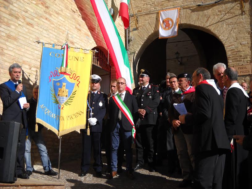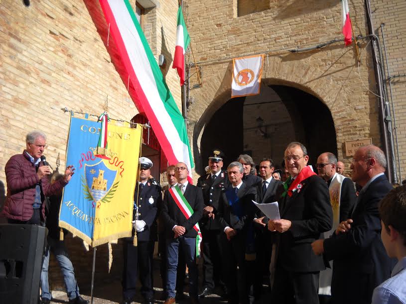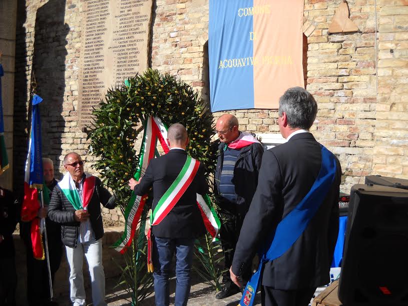 La sezione di Acquaviva è stata fondata nel 1959 per volere degli ex combattenti di Acquaviva reduci della prima e seconda guerra mondiale. Dal 2014 il presidente dell’A.N.C.R. è il cav. Duilio Grilli già segretario dal 1978. Molte le iniziative a cui hanno partecipato: 2002 raduno di tutte le Armi combattentistiche ed A.N.C.R., 2003 raduno regionale, 2004 1*raduno interregionale, 2005 2*raduno interregionale. Nell’anno 2015 conta ad Acquaviva n. 76 tesserati, che cercano con impegno di non far dimenticare questi eroi caduti sul campo per liberare la loro Patria. Dopodichè il sindaco di Acquaviva, Rosetti, è stato invitato a prendere la parola. L’intervento si è distinto per la grande riconoscenza e ricordo verso tutti i caduti. Il sindaco ha espresso anche un sentito ringraziamento a tutta l’Associazione N.R.C., per l’impegno costante a favore di tali commemorazioni. A tutte le autorità presenti e ai suoi cittadini ha rivolto un caloroso grazie per l’affettuosa partecipazione. Hanno accettato gentilmente l’invito a essere presenti a tale manifestazione il consigliere regionale Celani e il consigliere provinciale Corradetti, esprimendo durante la commemorazione anche un loro splendido pensiero per i caduti e per l’enorme sacrificio sostenuto a favore della Patria. L’A.N.C.R. nella persona del presidente cav. Grilli ha ringraziato ed espresso un commosso grazie all’Istituto Scolastico di Acquaviva, ai dirigenti, insegnanti e ragazzi presenti alla manifestazione. Gli alunni hanno letto dei loro personali componimenti e poesie per i loro compaesani caduti sul campo di battaglia. Verso le 12:30 circa è stata deposta la Corona, dopo la benedizione da parte del parroco don Alfredo, sotto il monumento ai caduti e con la partecipazione della banda musicale di San Benedetto del Tronto è stato cantato “L’Inno di Mameli”. Il presidente cav. Grilli a nome dell’Associazione Nazionale Combattenti e Reduci e della cittadinanza di Acquaviva, ha ringraziato tutti gli intervenuti: il sindaco di Acquaviva Rosetti e tutta l’amm.ne comunale, il consigliere regionale Celani, il consigliere provinciale Corradetti, il presidente del CO.RE.COM. Marche Colonnella, il presidente della Banca Picena Truentina Mattioli, il presidente dell’Associazione Palio del Duca cav. Gaetani, il Maresciallo Comandante di Compagnia della stazione di Acquaviva Petruzzi, la polizia municipale di Acquaviva nella persona del vig. Oberdani,i rappresentanti della marina militare,la Pro Loco di Acquaviva Picena, l’Associazione Bersaglieri sezione di San Benedetto del Tronto “Bers. Rismondi”, l’Associazione Carabinieri in Congedo di San Benedetto del Tronto, la protezione civile di Acquaviva Picena, l’Associazione Mutilati e Invalidi di Guerra, la Banda della Città di san Benedetto del Tronto e il parroco don Alfredo. La giornata è proseguita con un lieto e ricco pranzo al ristorante “Il Grillo” di Acquaviva Picena.