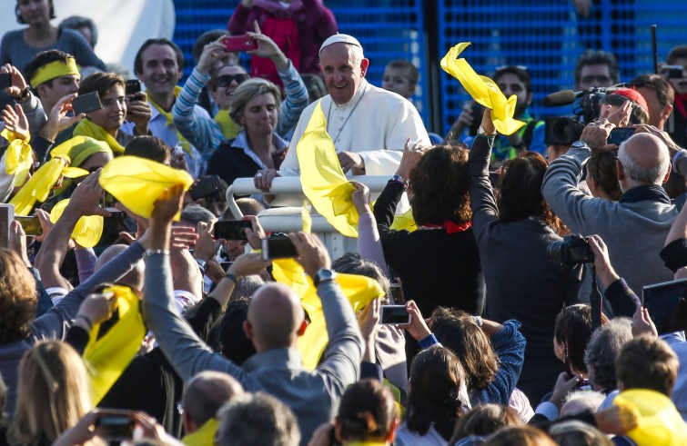 Allo stadio “Artemio Franchi” di Firenze, dove di solito le tribune sono gremite per assistere alle partite di calcio, quest’oggi il calore del folto pubblico (60mila persone) è tutto per papa Francesco, che dal centro dell’impianto pronuncia l’omelia in occasione della Santa Messa.