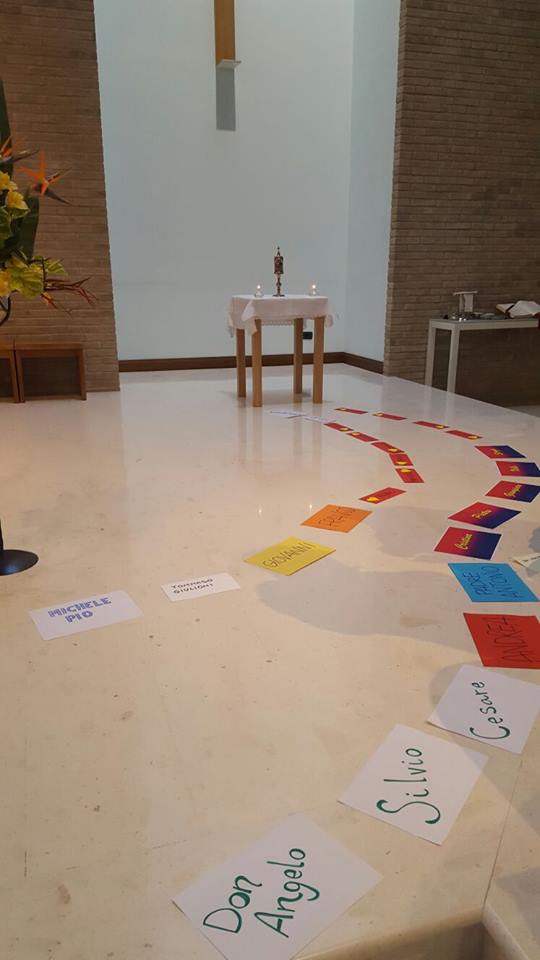 Particolarmente significativo è stato il momento in cui ogni gruppo ha portato  ai piedi dell’altare un simbolo dell’essere pellegrino accompagnato da una riflessione:  il ripetersi di stessi simboli appartenenti a gruppi diversi ci fa capire che aldilà delle singole esperienze, delle tradizioni e della storia di ciascuno di noi, siamo tutti fratelli e sorelle in cammino, dei pellegrini che camminano per amore  e che la vita è vita se continuiamo a fare del nostro meglio per essere sempre pronti a servire.