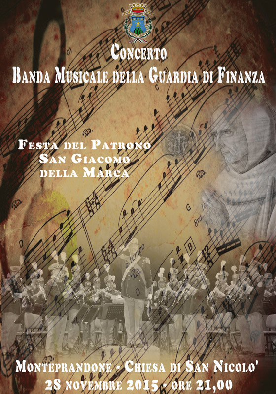 Alle ore 21:00 presso la Chiesa San Nicolò nel centro storico di Monteprandone, la Banda Musicale della Guardia di Finanza risalterà la particolare atmosfera celebrativa attraverso l’esecuzione di brani di repertorio selezionati per maggiore espressione e significatività, sotto la direzione del Maestro Vice Direttore, Capitano Gino Bergamini.