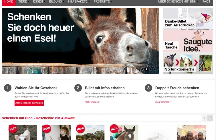 Solidarietà, dal Burundi all’Etiopia. Il web-negozio di Caritas Austria (molto attiva sia sul versante nazionale che sugli scenari internazionali) offre, ad esempio, la possibilità di comprare un asino per le donne in Etiopia, un sacco a pelo per un senza fissa dimora o un pacchetto di aiuti per i bambini siriani nei campi profughi. Si può quindi instaurare una comunicazione con le persone o le comunità cui è indirizzato il dono attraverso un biglietto d’accompagnamento che verrà recapitato assieme al regalo. Quest’ultimo può essere inoltre effettuato a nome di amici o parenti, ai quali si può ulteriormente donare una t-shirt con una allegra immagine del dono stesso. Con 50 euro, e la concretezza di un grugnito, si può regalare un maiale a una famiglia bisognosa del Burundi, il Paese più povero del mondo con il 43% degli abitanti sulla linea della morte per fame.