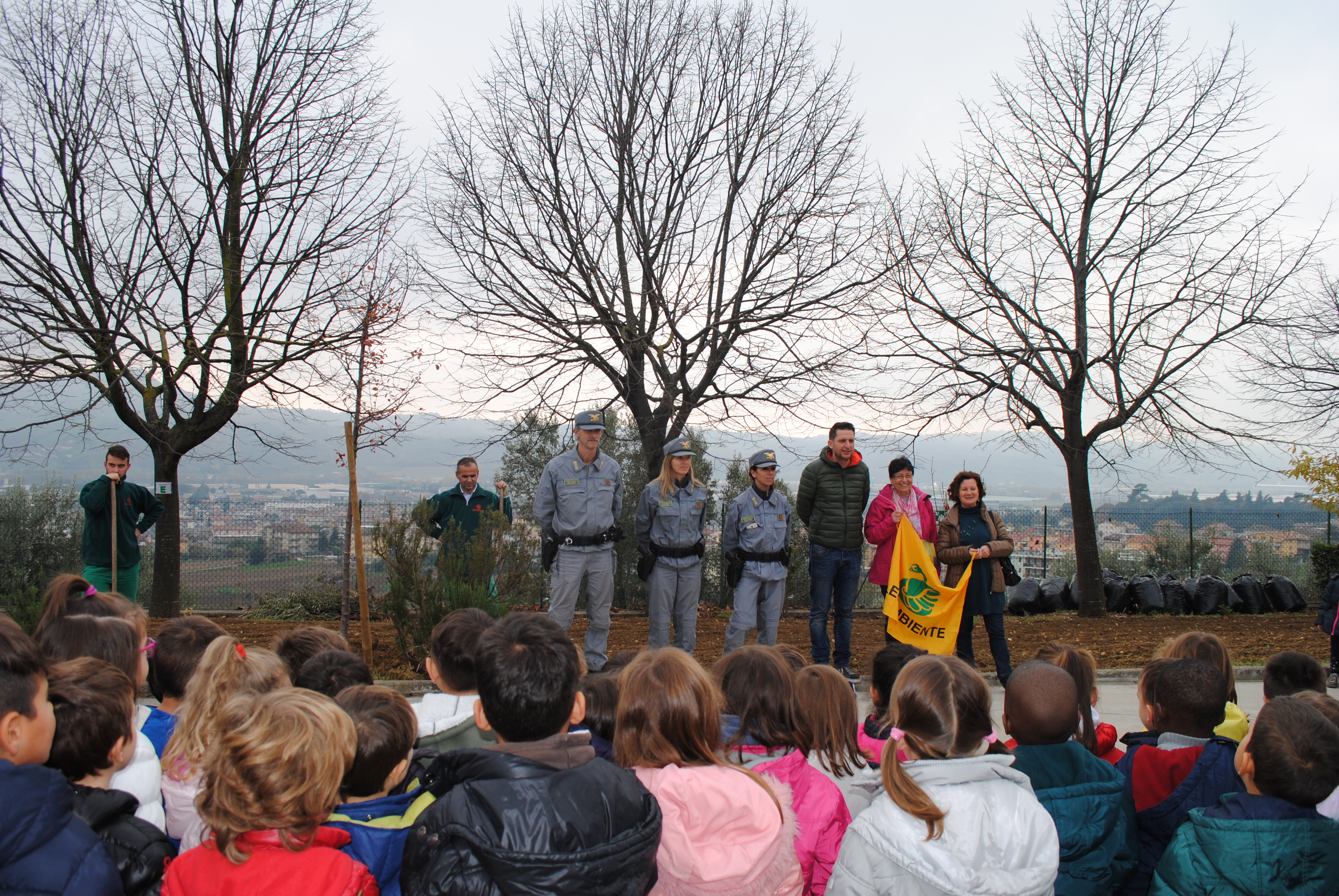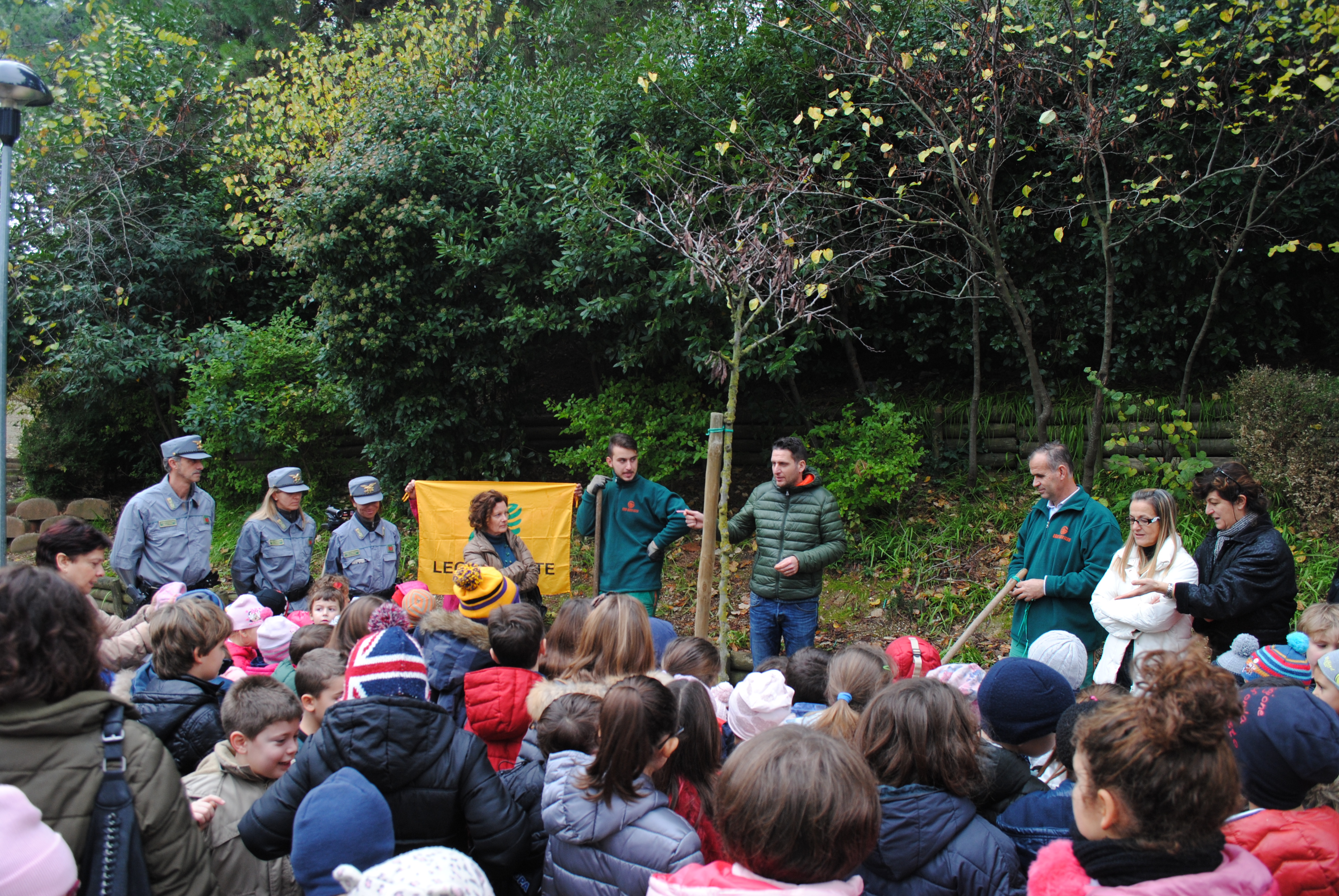 Alla cerimonia sono intervenuti il Consigliere Loredana Amabili, il Consigliere con delega all’Istruzione prof. Daniela Morelli, Silvana Guardiani e Raffaela Serafini, entrambe volontarie di Legambiente, insieme con il personale della Guardia Forestale, che hanno ricordato  come le piante riducano l’effetto serra e contrastino i fenomeni meteo causati dai mutamenti climatici, essendo una risorsa della Natura contro il riscaldamento globale, e garantiscano una risposta efficace ai danni dell’agire umano sulla Terra.