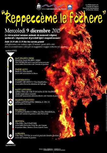 SAN BENEDETTO DEL TRONTO – Per tenere viva la memoria collettiva delle più antiche e sentite tradizioni cittadine, anche quest’anno l’Amministrazione comunale propone il tour in autobus per visitare le “fochere”, i falò che, secondo la tradizione, illuminano nella notte del 9 dicembre il passaggio aereo della Santa Casa diretta a Loreto.
