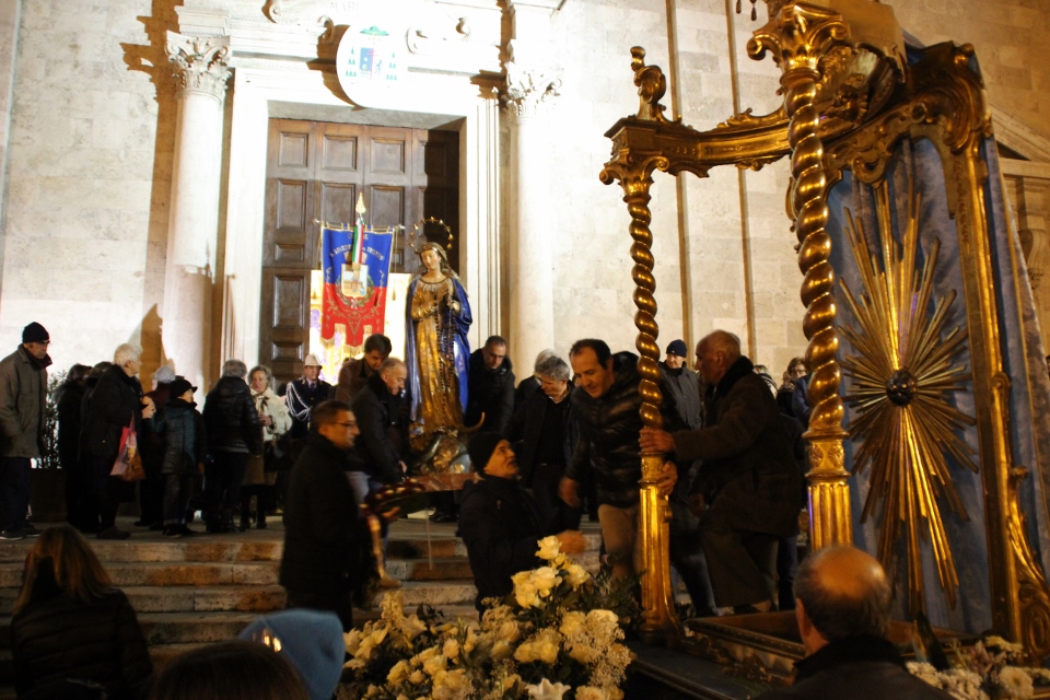 Al termine della celebrazione è iniziata la solenne processione verso l’Abbazia di S. Benedetto Martire dove si è svolta la cerimonia del rinnovo del voto alla Madonna Immacolata che si ripete dal 1855, quando la città fu colpita dal terribile “cholera morbus” che fece centinaia di morti.