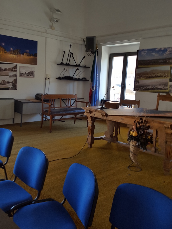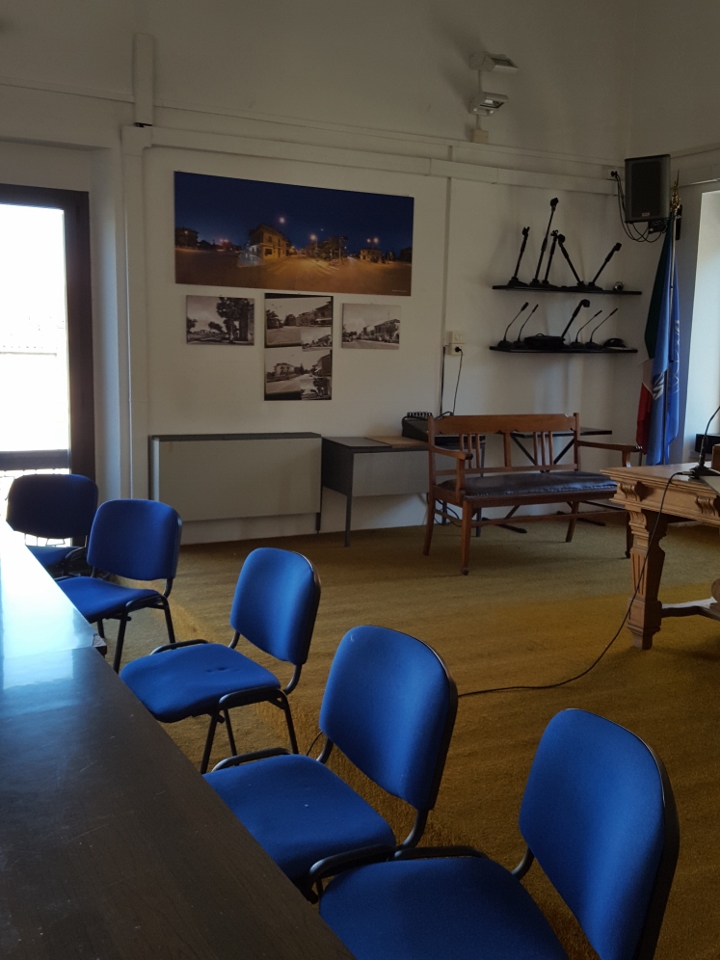 La Sala Consiliare si presenta, dunque, come un album fotografico extra-large, dove le pagine sono le pareti e le foto sono tutte in formato gigante: un album prezioso che racconta la storia di una grande “famiglia”, quella del popolo santegidiese, una comunità alla quale è toccata una grande fortuna … visto che per sfogliare le pagine della propria storia e fare un tuffo del passato le basta varcare le porte del proprio Comune.