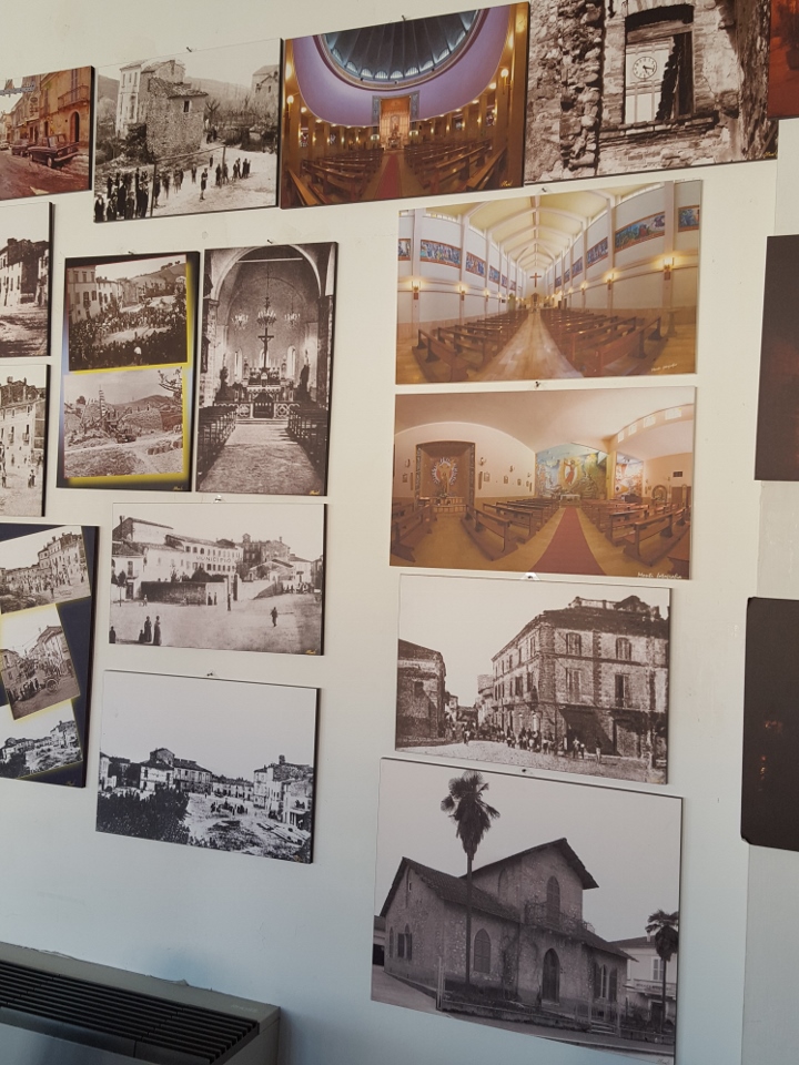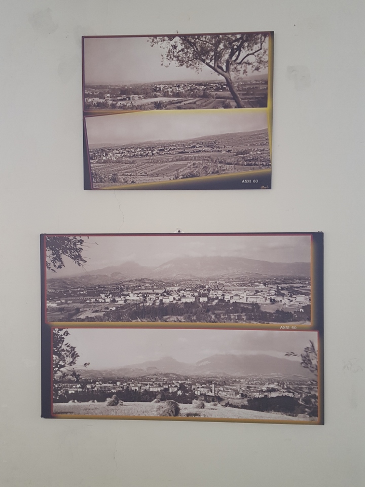 Percorrendo il perimetro della Sala dalla destra dell’ingresso, ci si imbatte in una serie di foto panoramiche sull’agglomerato di Faraone Vecchio, un borgo medievale oggi in stato di abbandono ma comunque un patrimonio storico di fondamentale importanza per tutta la Val Vibrata; a seguire, diverse foto che ritraggono la frazione di Paolantonio e la Sant’Egidio di ieri e di oggi, cresciuta e modificatasi nel tempo.