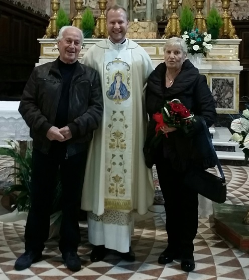 MONTALTO DELLE MARCHE – Nella splendida cornice della Basilica Concattedrale di Santa Maria Assunta in Montalto, i Coniugi Renzo Bruni e Gabriella Iaconi hanno celebrato il 60° Anniversario del loro Matrimonio, infatti nell’anno 1955, unirono le loro vite nel Vincolo Santo nella Basilica Santuario della Santa Casa di Loreto. Rendendo grazie a Dio per il Dono della loro unione salda e concorde, e circondati dall’affetto e dalla presenza commossa e sentita di Familiari e Amici, Renzo e Gabriella hanno nuovamente affidato al Signore la loro vita insieme nella Benedizione impartita dal loro nipote, il Parroco don Lorenzo Bruni, che li ha invitati, insieme a tutta la Comunità presente, a elevare al Padre celeste l’Inno di lode e di supplica per le meraviglie di Grazia con cui sempre Egli arricchisce la vita dei suoi Figli. Tanti Auguri dunque, carissimi Sposi, e dalle Nozze di Diamante, che avete così ben celebrato, l’appuntamento per tutti coloro che vi vogliono bene a quelle di Platino…!