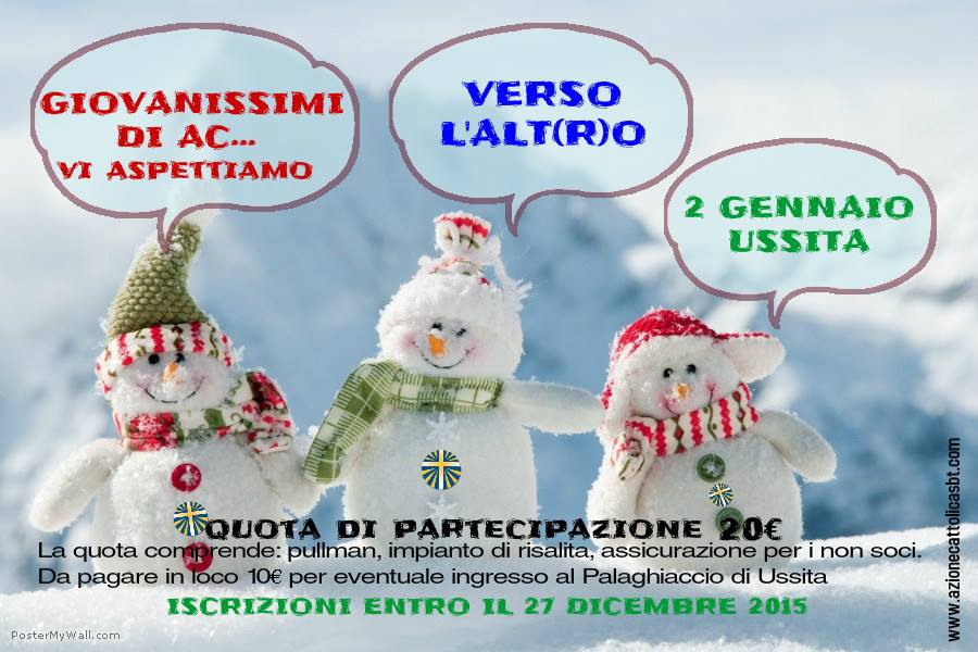 Anche quest’anno, a grande richiesta, i giovani AC stanno raccogliendo le adesioni per la consueta uscita sulla neve, prevista per sabato 2 gennaio 2016 a Ussita .