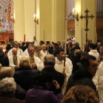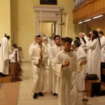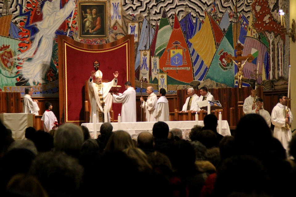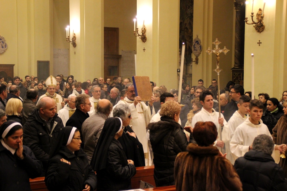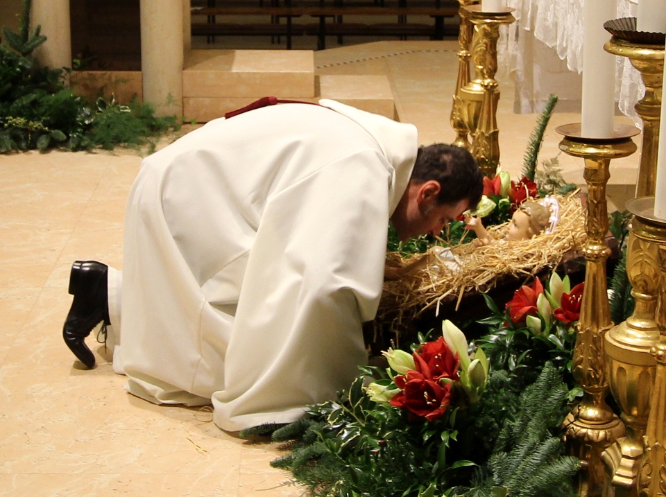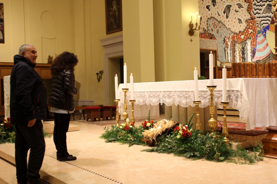 È quello che questa notte, dopo essere passati attraverso la porta santa, vogliamo fare con questa nostra presenza, quasi a voler dire a Gesù che noi non vogliamo lasciarlo solo, che vogliamo, quasi a riparazione di quello che è avvenuto a Betlemme, offrirgli un degno alloggio dentro la nostra chiesa, nella nostra vita personale, nelle nostre famiglie e nella nostra società. Vogliamo sostituire al tepore del bue e dell’asinello il calore della nostra presenza ed accoglienza che lo scaldino con il calore del nostro cuore, con il calore delle nostre famiglie ricche di amore.