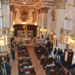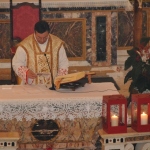 Il sacerdote (il priore-parroco Padre Agostino Maiolini), contornato dai numerosi ragazzi del locale oratorio, tutti rigorosamente in costume d’epoca, ha fatto il suo ingresso in processione dal fondo della Chiesa accompagnato dal canto della Corale che intonava l’ “Adeste Fideles”!